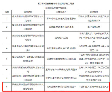 作为第一完成单位、张勇教授作为第二完成人的项目“高维数据特征选择问题的智能优化理论与方法”荣获自然科学奖二等奖:随着先进控制和人工智能技术的发展,智能制造等领域产生的数据持续增长。基于智能优化的特征选择方法,能够借助全局搜索机制找到最优特征子集,简化模型复杂度,成为一种重要的数据降维技术。但是,受知识驱动智能搜索机理不清、高维特征空间协同探索机制不明、特征子集性能评价体系不完备等限制,现有方法存在搜索策略自主性差、维数灾难现象严重、最优特征子集适用场景有限等难题。项目深入研究高维数据特征选择问题的智能优化理论与方法,给出了多域知识协同学习的智能搜索策略自演化机制,提出了高维特征空间分割的合作型协同智能搜索架构,建立了代价敏感特征选择问题的多目标智能优化体系,成功用于典型肺炎诊断、语言康复治疗评估等问题,突破了目标增多和不确定对智能优化方法设计的双重挑战。