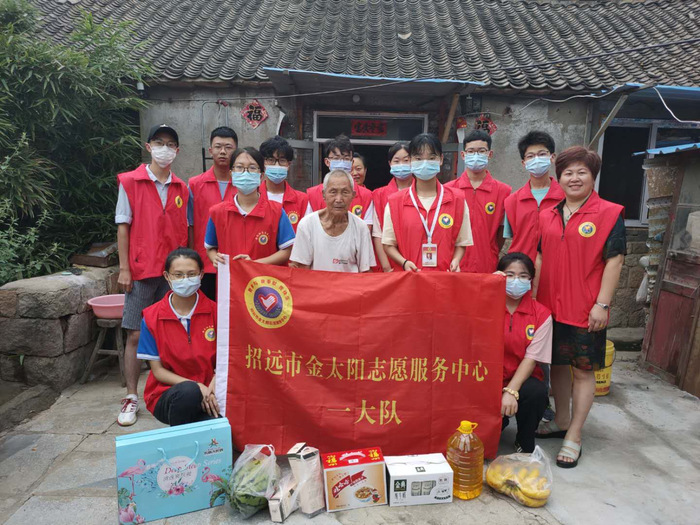2020年8月9日,矿大信控学院李波同学与资源学院王毅同学随招远市志愿协会一起去招远市大秦家看望两家孤寡老人,并为两位老人送去了一些生活用品。