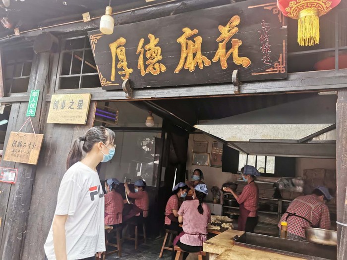 8月7日,实践团刘纹嘉同学前往陕西袁家村进行调研。袁家村是一个集人文旅游、美食小集、住宿休闲为一体且人流量密集的旅游度假村,经调查,袁家村在复产复工期间进行了严格的游客管控和自制管控,除此之外,袁家村的商户还另辟蹊径,在抖音,快手等短视频网络平台上发视频,一方面为吸引游客积攒人气,另一方面利用网络流量增添收益,刘纹嘉同学深刻感受到互联网对人们的生产生活产生了深远的影响。