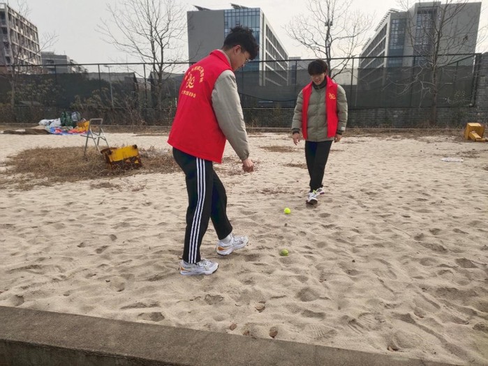 12月5日上午10时,团支部所有成员在青创广场集合完毕,负责人分配好场地后,志愿者们分别到达一运网球场和三运网球场,仔细寻找并捡拾网球场内外以及围栏附近的网球。活动期间,志愿者们热情洋溢,活动气氛高涨。清理完毕,全体成员再次到青创广场集合,团支书朱凯将大家捡拾到的网球平均分发给每个人,各位志愿者对网球进行改造,安装在椅子脚上,减少宿舍噪音。