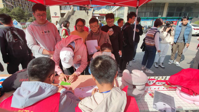 本次活动志愿者协会组织了蒙眼写字、蒙眼摸字、蒙眼贴纸、蒙眼掷球四个小游戏供大家参与,进而让同学们能够从盲人生活的各个方面去体验盲人的艰辛,每一个小游戏都要求蒙眼进行来体验盲人的艰辛。游戏都看似简单,但在看不见的情况下难度很高,同学们也感叹到:“很难想象失去光明后的生活,盲人群体真的很坚强。”