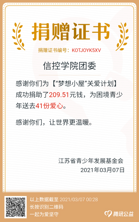 为响应校团委在全校范围内开展的“‘童享阳光,青春护航’,助力困境儿童梦想小屋改造”号召,协助改善全省万名“事实孤儿”的成长环境,信控学院锋行青年志愿者协会举办了“走”出温暖,与爱同“行”活动。
