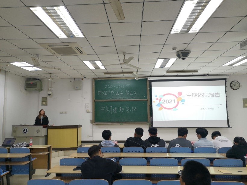4月7日晚,信控学院学生会和基础团务中心在博一A302召开中期述职答辩,学生会主席团和基础团务中心负责人担任此次述职评委,学生会和基础团务中心全体成员参会聆听,会议由梅子怡同学主持。