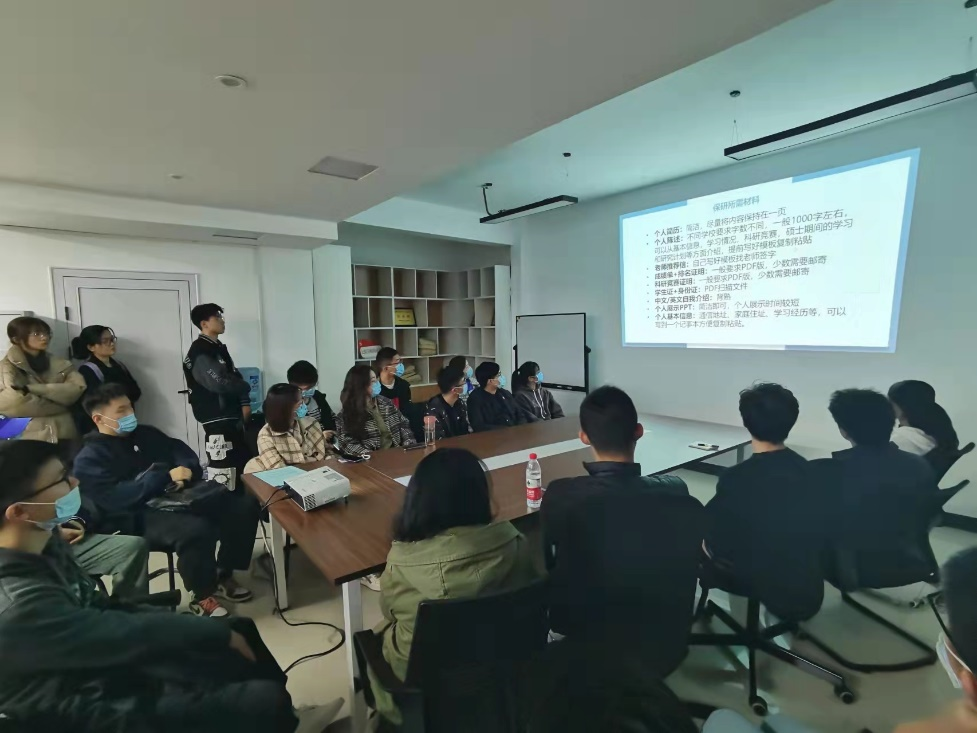 会上,李进同学从保研基本条件、流程、准备材料、信息获取、学院历年保研情况和面试技巧等方面进行详细讲述,并从亲身经历出发,分享了自己保研到清华大学的心路历程,强调了保研过程中需要注意的事项,叮嘱要注意时间的合理安排、夏令营申报的准备和与导师的联系沟通。互动环节上,同学们积极向学长请教,提出自己的疑惑,李进同学细致耐心地回答了大家的问题。