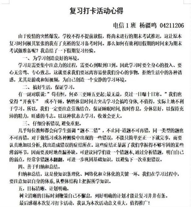 暑假接近尾声,为帮助同学们尽快回到学习状态,以更好的状态迎接新学期的学习以及因疫情延后的考试,8月15日至8月30日,信控学院面向全体学生策划并开展了线上“勤勉乐学,有记可循”暑假复习打卡活动。