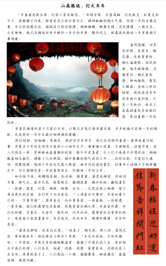 妙笔生花,翰墨留香。同学们用文字表达内心感触,记录难忘时刻,讲述自己对于春节的独特记忆,并配图展示立体的家乡春节习俗。同学们笔下的春节活动丰富多彩,具有浓郁的地方特色,凝聚着中华传统文化的精华。评委根据参赛作品的文采性、真实性、新颖度进行评分,并根据得分为参赛选手颁奖。