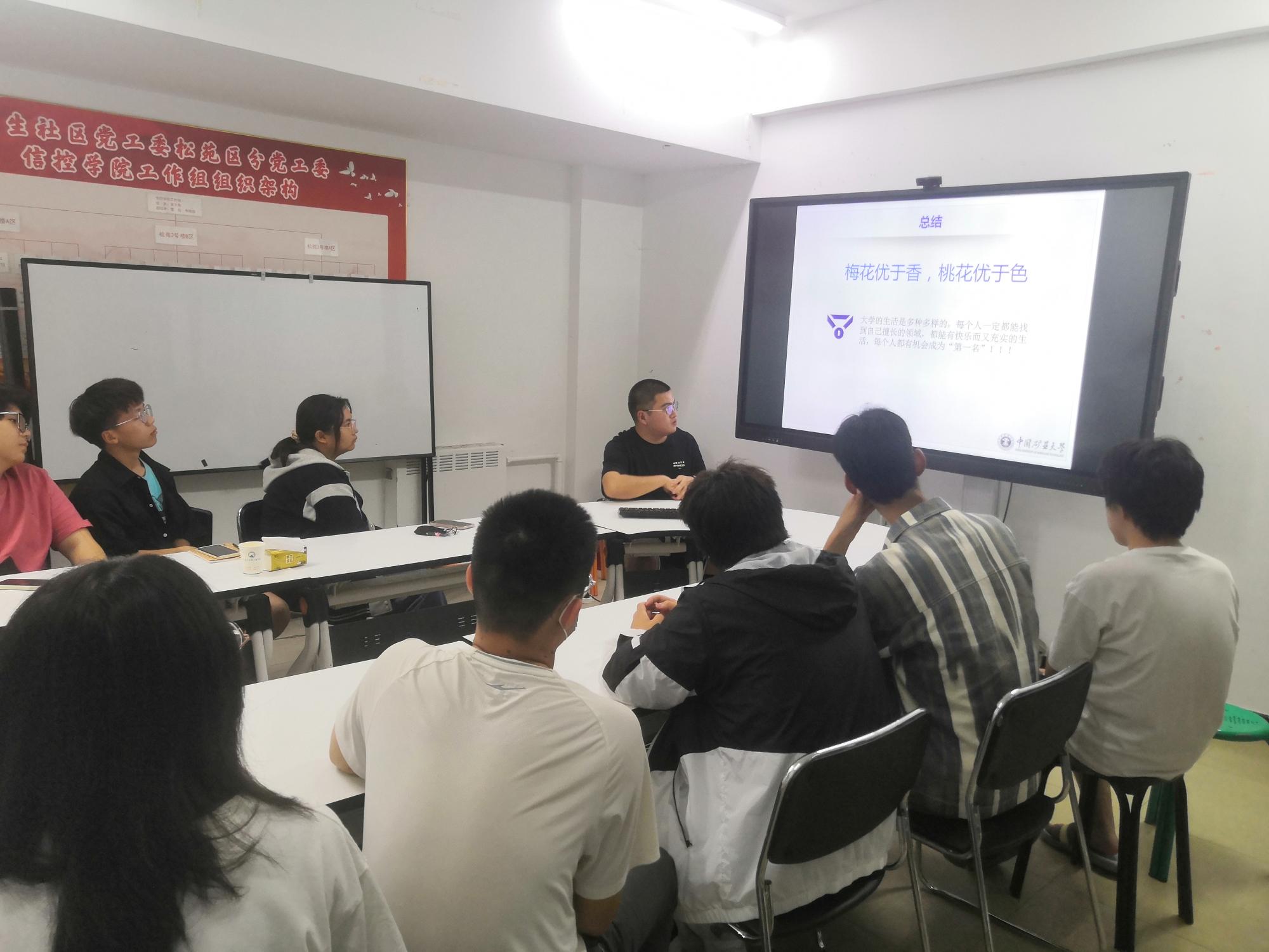 为进一步推进学生开展生涯规划,促进学生健康成长和全面发展,信控学院于5月26日晚在松苑区分党工委信控学院工作组松3会议室举办信控学院“力行学子”报告会系列活动之学业指导专场。学院2020级陈佳乐同学和2021级武昱泽同学作主题分享,2022级辅导员和2022级学生参加了此次报告会。