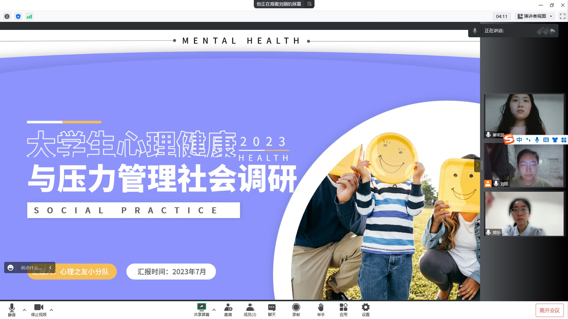 随着社会的不断发展和竞争的加剧,大学生心理健康问题引起了广泛关注。为了更好地关注大学生的心理健康状况,信控学院心理之友小分队近日于线上开展了一项以大学生心理健康调研为主题的暑期社会实践活动。