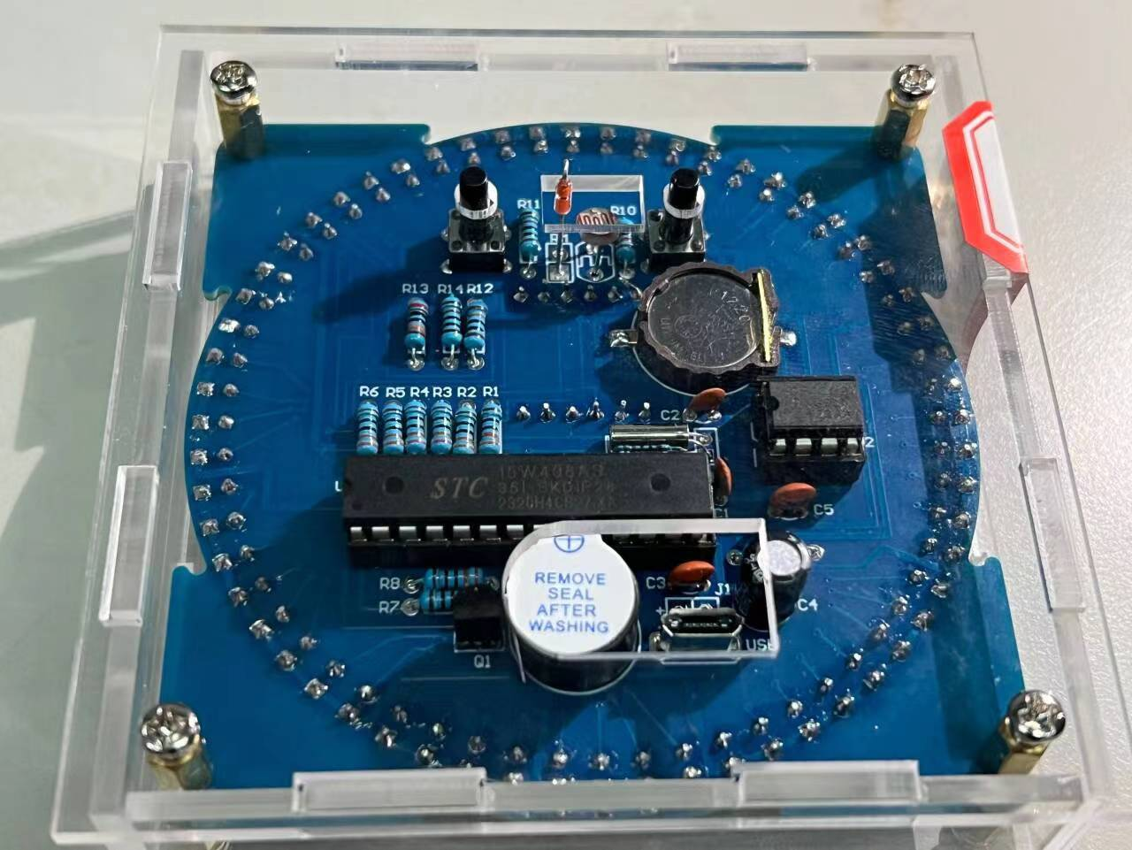 比赛分为线下培训、活动物资发放、初赛和决赛四部分,支持个人或团队参赛,吸引了众多同学参与。11月16日至17日,承办部门将焊接材料发放给参赛人员。18日,信控学院锋行青年志愿者协会科技服务部借用焊接实习专用实验室,为有需求的参赛者进行了焊接培训。初赛的比赛项目是电子数字时钟,20日前参赛队伍完成初赛作品的焊接,由评委对作品进行评审,并选拔进入决赛的队伍或成员。决赛项目为制作LED五角星呼吸灯,须在29日13时前完成。评审人员按照评分标准进行打分,最终于12月1日评选出获奖队伍。