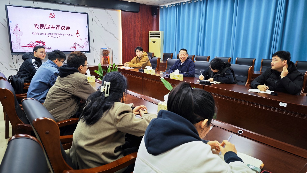 研究生第十一党支部在信控学院A311会议室召开年度党员民主评议会暨三月政治学习会。副院长陈平,支部指导老师雷萌,以及支部全体党员参加会议。会议由党支部书记赵天聚主持。