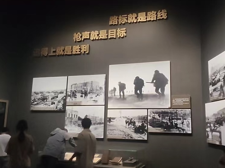 7月11日上午,实践团前往淮海战役纪念馆,按照规划好的参观路线有序进入纪念馆内部。成员们首先进入了纪念馆的主展厅,通过丰富的历史文物、图片、影像资料和详细的文字说明,全面了解了淮海战役的历史背景、战略部署、战役过程以及重要战役的详细情况。随着参观的继续深入,团队成员观看了更多的历史文物和影像资料,更深刻地感受到了当年战场的紧张氛围和革命先烈英勇无畏的精神。