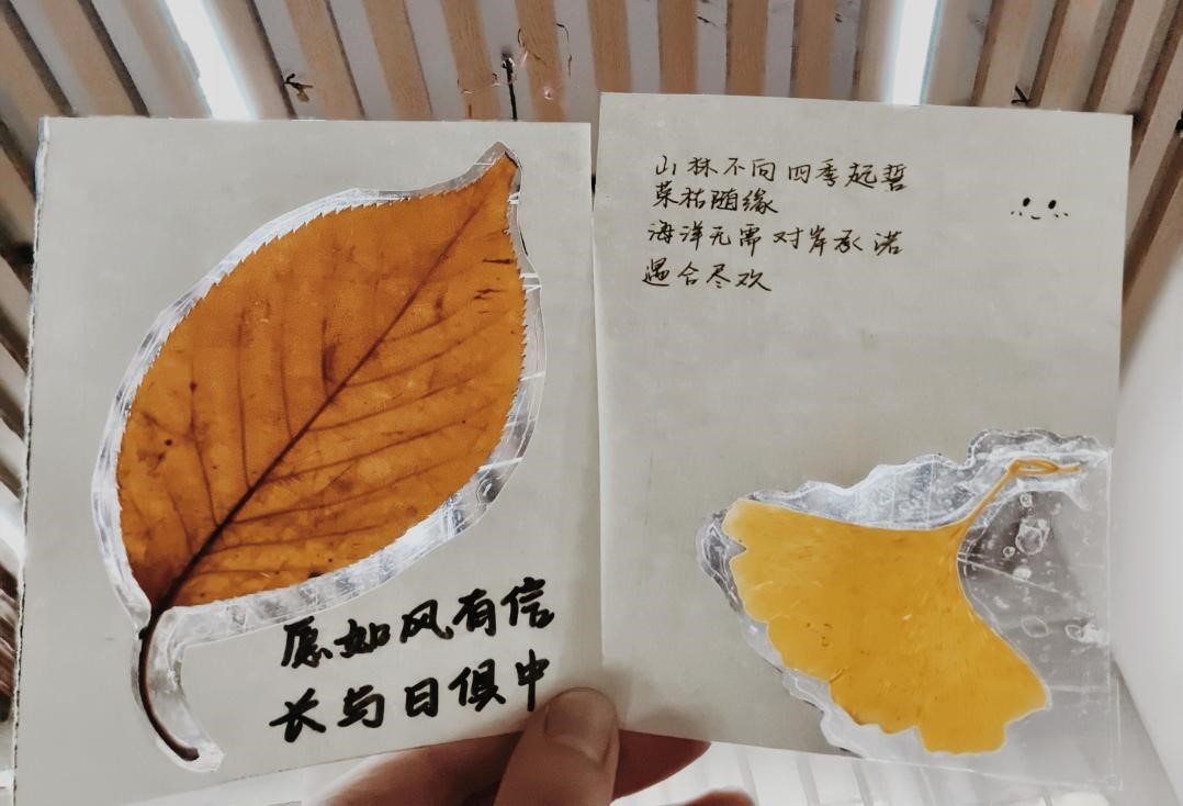活动得到了同学们的积极响应。参与者在学校的各个角落拾取落叶,并在活动负责人的指导下,发挥想象和创意,制作出带有诗句、对联等优美语句的别开生面书签,为每一片落叶赋予独特的意义。