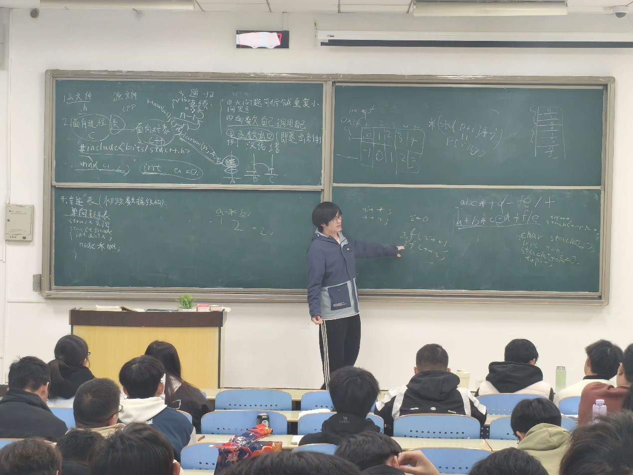 答疑会上,2023级石恩绮、高岩两位学长结合自身学习两门课程的经验,针对新生在学习过程中遇到的难题进行了答疑,逐步梳理课程中的知识点,将知识点与题目相串联,详细解析了各类难题的解题思路,引导大家养成编写程序时的正确思维。台下的同学们听得聚精会神。答疑会结束后,同学们纷纷表示此次活动使他们对《C程序设计》《高级语言设计》这两门课程的学习有了更深层次的理解与认识。