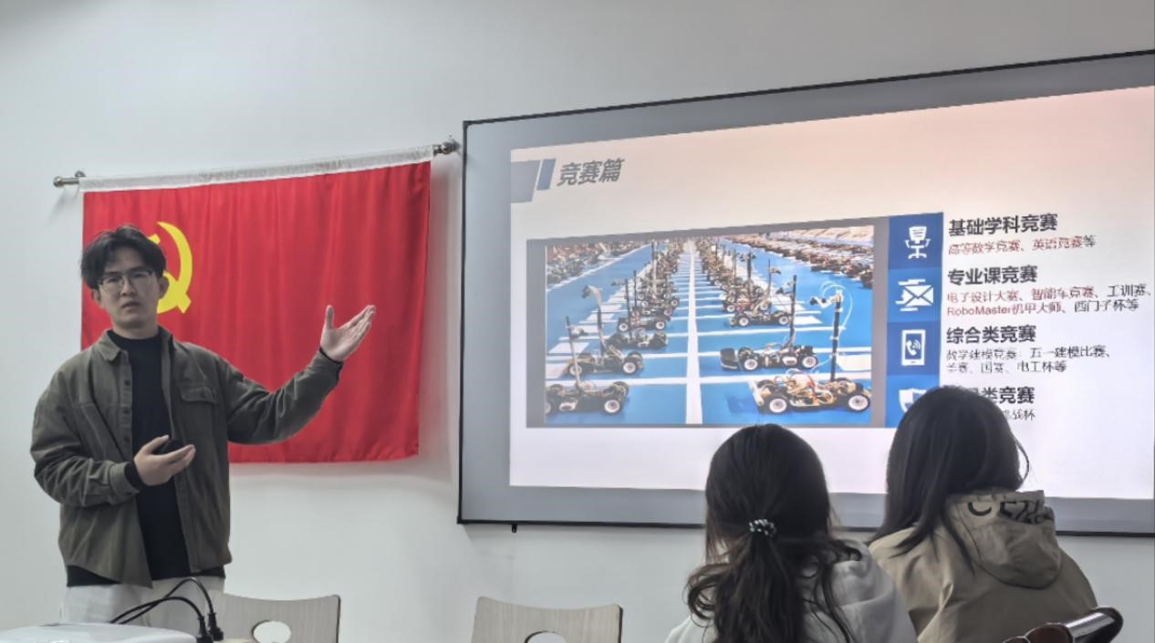 为帮助2024级同学更好地了解科创竞赛相关信息,激发大家的科技创新热情。12月4日,信控学院邀请2021级武昱泽学长于桃四 A417学院党站开展科创讲座。