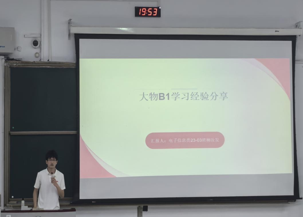 为帮助2024级同学明确学习目标和努力方向,加强知识运用能力,更好地应对大学物理B1考试,5月7日,信控学院举办了朋辈系列讲座活动,邀请柳汝发、夏文楚两位同学在博学楼为2024级同学开展物理答疑讲座。