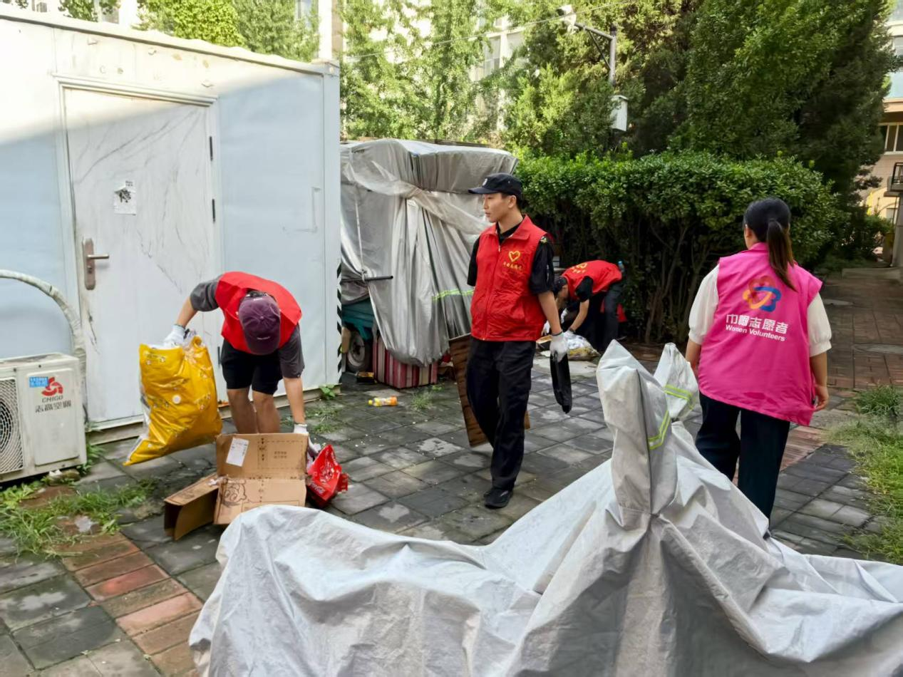 实践期间,团队成员走访了社区南北区共46号楼,重点调研南区老年人口占比高达63%的区域。调研发现,废品堆放问题与老年人经济压力密切相关——82%的拾捡老人依赖废品收入补贴生活,其中76%的老人拾荒收入用于购买药品。但是长期堆放的废品不仅占用了公共空间,影响社区环境卫生,甚至引发了邻里矛盾。团队联合社区工作人员和志愿者,开展集中清理行动,共清理26处废品堆积点,释放公共空间120平方米。清理中,成员们顶着高温徒手搬运废品,协助恢复绿化带。一位居民表示:“清理后楼道干净多了,蚊虫也少了。”