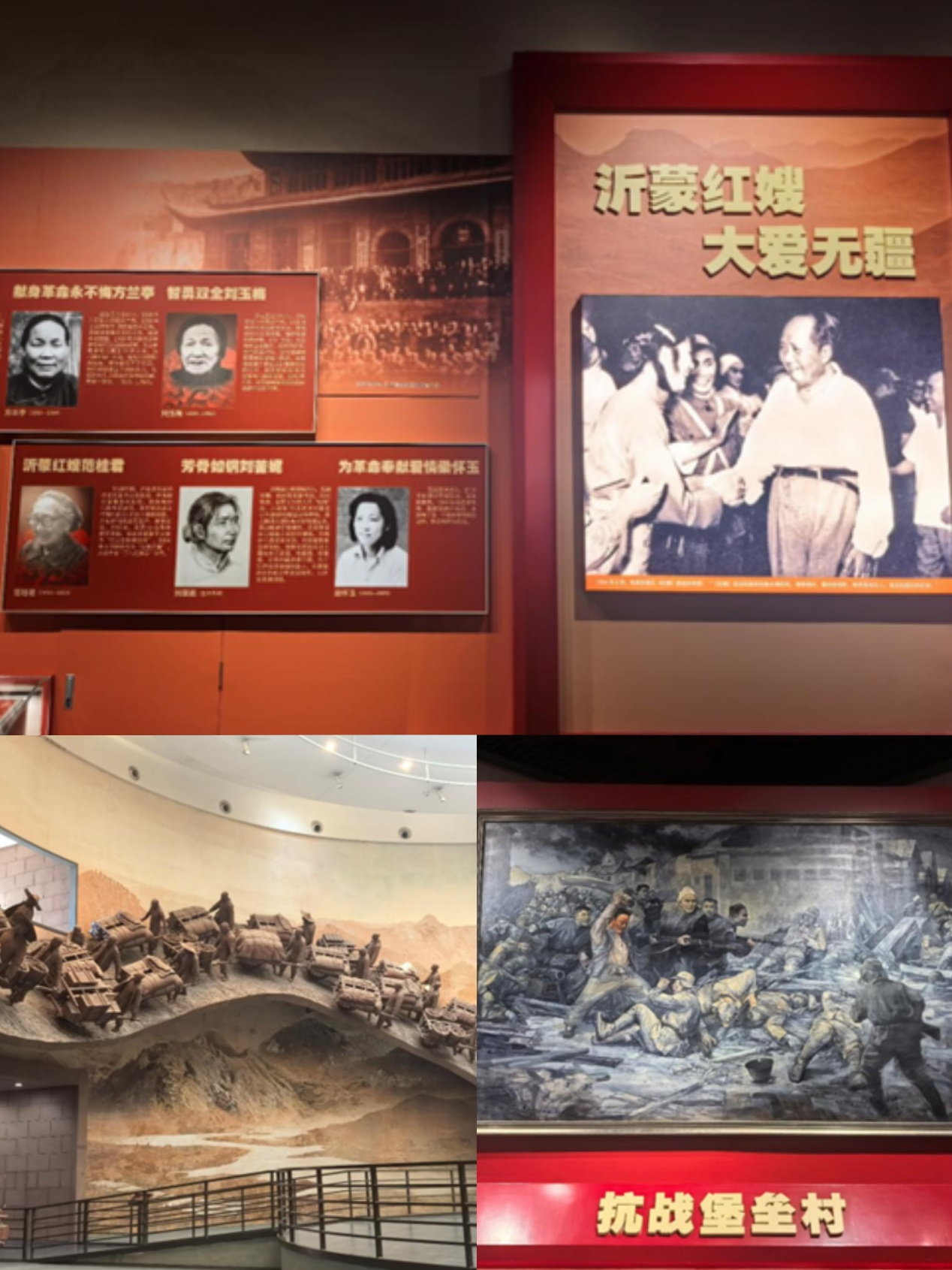 沂蒙革命纪念馆内的历史图片、文物、复原场景及多媒体展示,再现了烽火岁月。成员们观看展品、聆听讲解,从根据地创建到反“扫荡”斗争,从军队奋战到群众支援,诸多故事与画面将大家带回军民团结的革命年代。同时成员们深刻领悟了“小推车”的精神力量,这辆小推车,承载的不只是物资,更是人民群众对党和军队的信任与拥护。讲解员为成员们讲述了“沂蒙母亲”王换于创办战时托儿所、抚养革命后代的故事,她们的勇敢和牺牲精神依然闪耀着光辉,团队成员均表示受到深刻触动与教育。