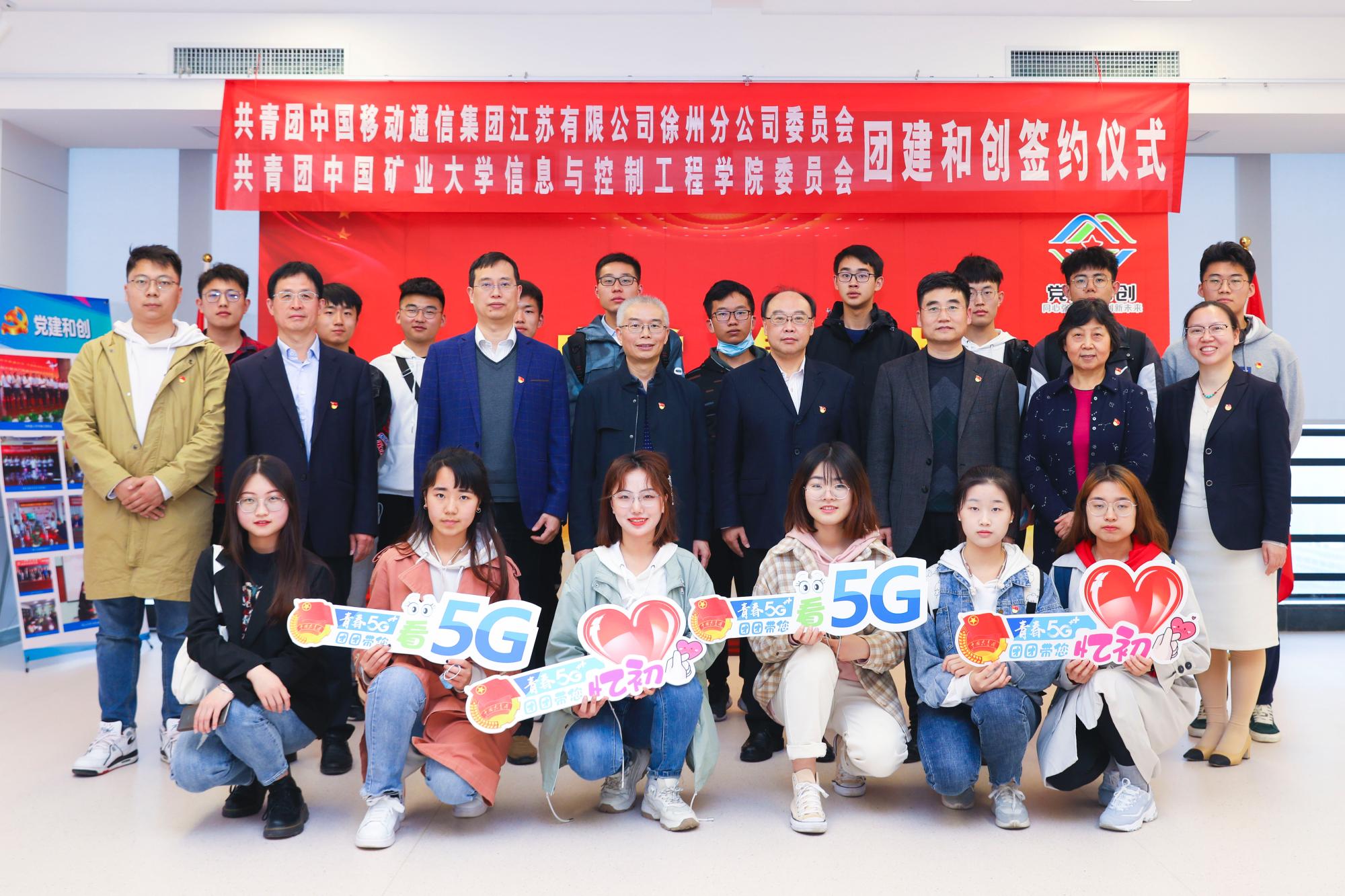 参观结束后,一行人来到报告厅开展结对共建活动。首先,信控学院团委与中国移动徐州分公司团委签署团建合创共建协议,就双方团组织建立互帮、互学、互助有效机制达成多项共识。随后,双方一同观看《激荡的红色电波》党史主题教育纪录片,进一步加强党史学习成果。在移动公司合唱团演唱红色歌曲《唱支山歌给党听》后,信控学院学生党员与徐州移动党员代表们一起合唱了《歌唱祖国》,将党日活动推向高潮。