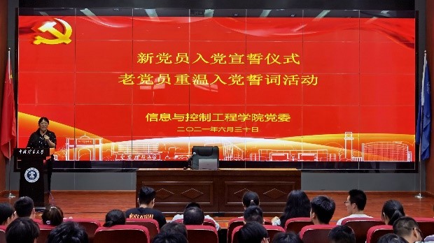 为庆祝中国共产党成立100周年,激励广大党员不忘初心、牢记使命,开拓进取、勇于担当,6月30日下午,信控学院党委在学院A101报告厅,举行新党员入党宣誓仪式和老党员重温入党誓词活动。首届全国教学名师、全国第二届杰出教学奖获得者、优秀共产党员于洪珍教授,学院党委书记张磊出席仪式和活动。仪式和活动由学院党委副书记翟文艳主持。