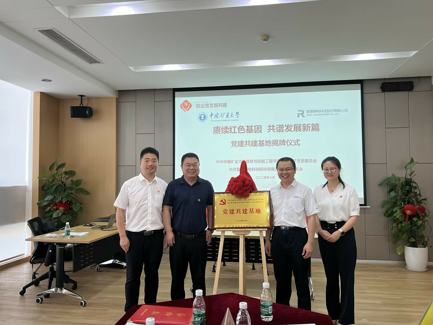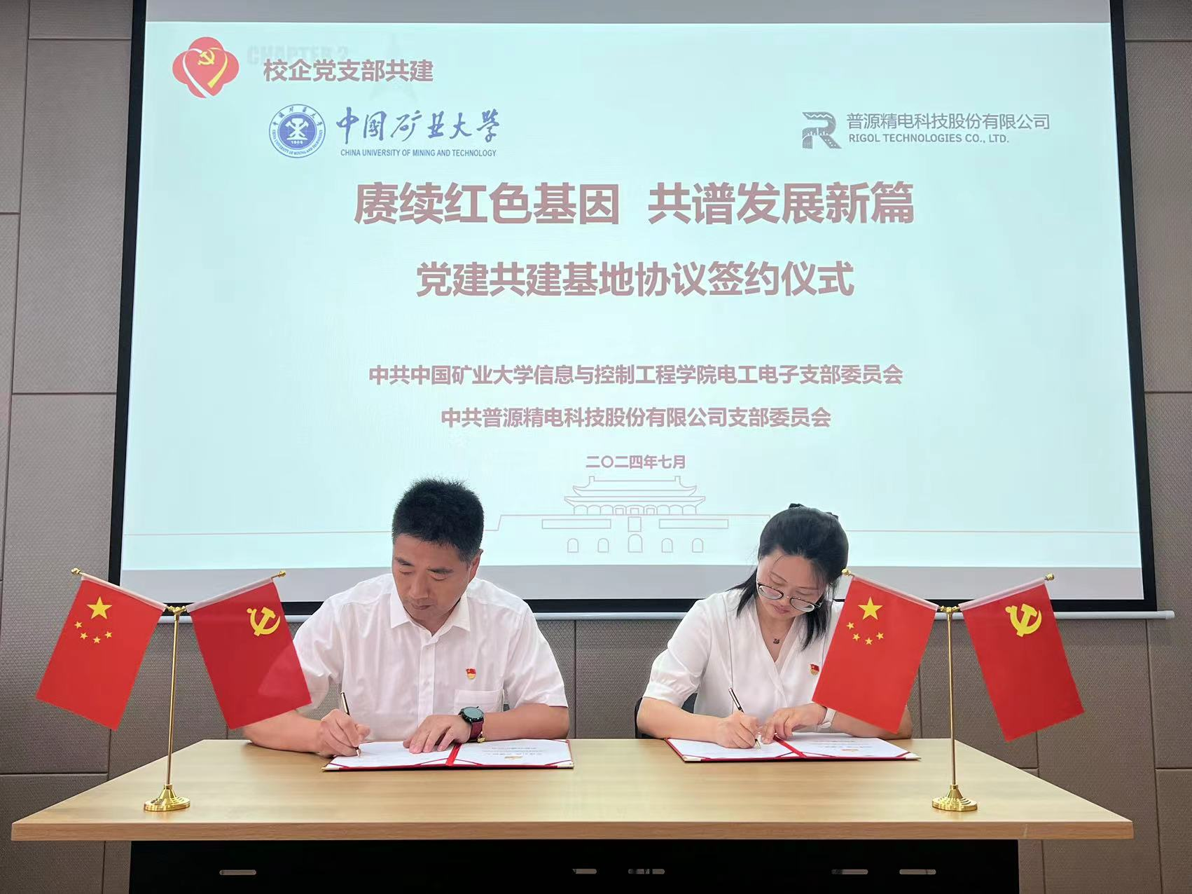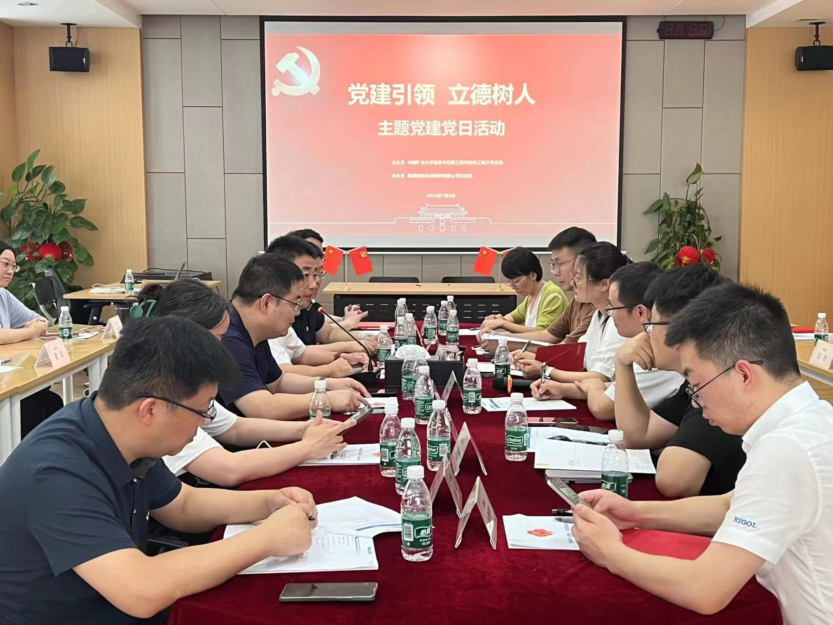 电工电子党支部与普源精电党支部签署了支部共建协议书,并举办了党建共建基地揭牌仪式。与会成员共同探讨了产教融合、协同育人新机制等方面的内容。