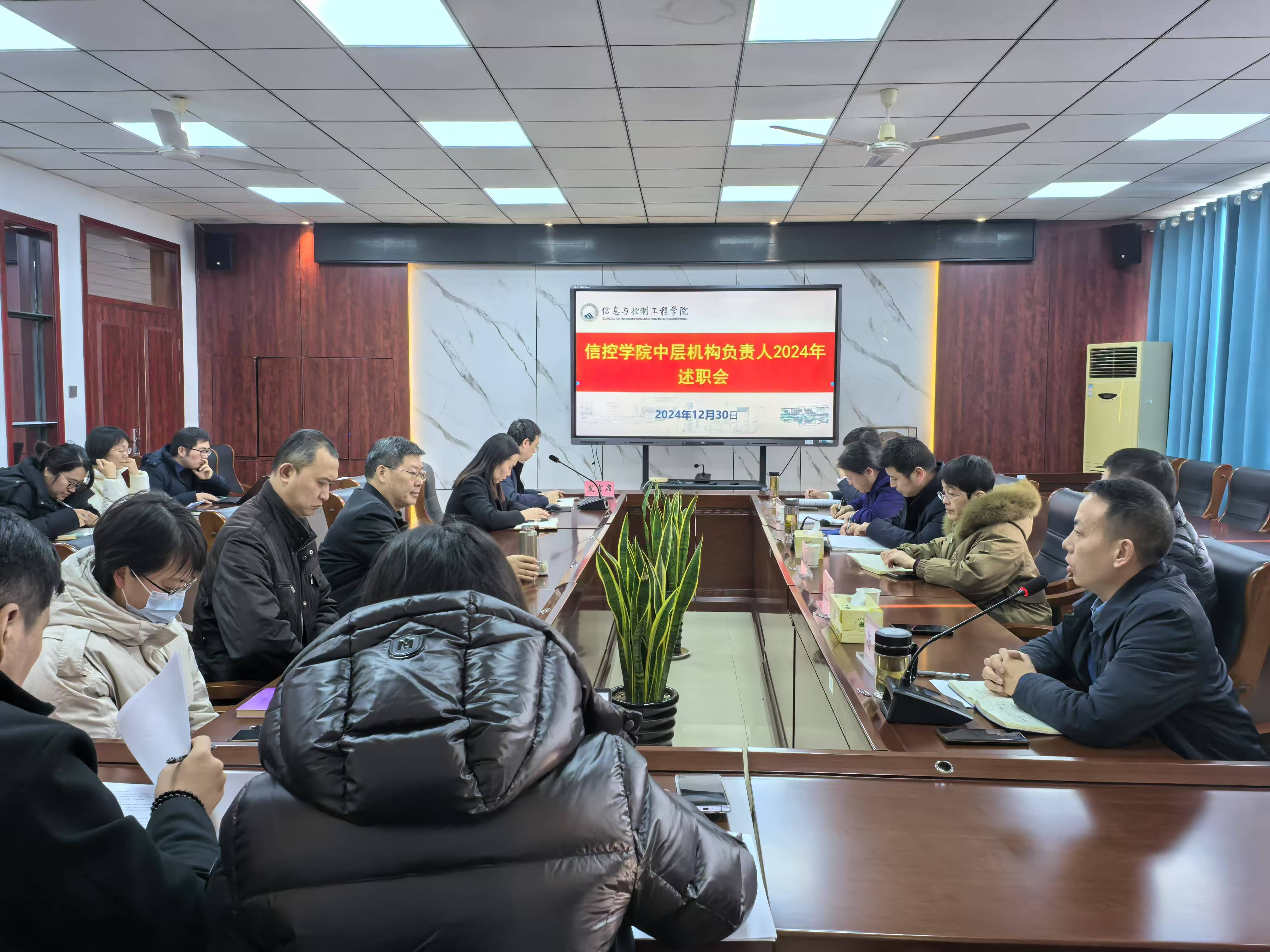 为推进落实2024年度工作任务,分享交流推动学院高质量发展的新思路、新举措,统筹谋划学院2025年重点工作,赋能放权,持续激发中层机构活力,12月30日下午,信控学院在A311会议室召开2024年度中层机构负责人述职会议。院党委书记程德强、院长王雪松、党委副书记翟文艳,副院长刘海、陈平、代伟,学院各系(学科、中心)、机关科室、群团组织等15个内设中层机构负责人参加会议。会议由陈平主持。