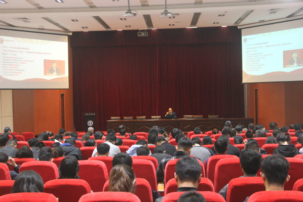 11月6日下午,信控学院党委书记吴瑜在信控楼A101报告厅以“‘立德树人,三全育人’培养德智体美劳全面发展的社会主义建设者和接班人”为题讲专题党课。信控学院全体教职工党员,本科生、研究生党员及学生骨干聆听本次党课。