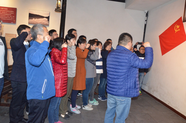 在盐城新四军军部旧址,党员们观看了当年的珍贵史料,聆听了新四军浴血奋战的事迹,学习了新四军高度的爱国精神、无畏的牺牲精神、能动的创造精神、科学的求实精神、不屈的拼搏精神的“铁军”精神,并在新四军军部旧址礼堂进行了重温入党誓词仪式。