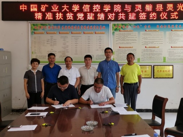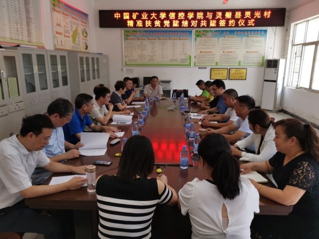 扶贫干部、信控学院党政办主任、灵光村第一书记董亮和灵光村委会工作人员接待并召开专题调研座谈会。会上,灵光村党支部书记胡长杰向与会老师介绍灵光村脱贫历程和发展情况,重点介绍了下半年全面脱贫工作计划和面临的主要问题。随后,吴瑜书记从强化科技服务、提高市场竞争、加强防范灾害能力等几方面对灵光村脱贫攻坚给出了建议,张磊书记表示要进一步强化校地合作,将科学扶贫落到实处,进而实现各领域的全面脱贫;各教师代表也结合自身专业知识对当地扶贫工作提供诸多可行建议。会议最后,信控学院电子信息与自动化教师党支部分别与当地村支部签署共建协议。