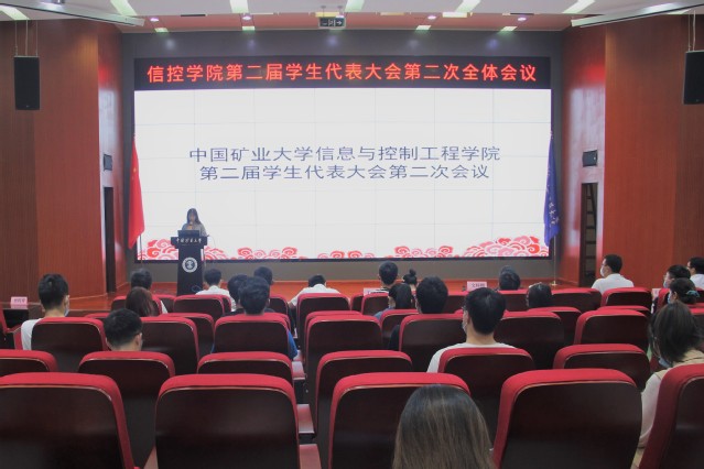 在学院楼A101报告厅召开学院第二届学生代表大会第二次全体会议。信控学院党委副书记翟文艳、2018级辅导员管钰、学院团委书记祁昊宇、2016级辅导员焦敬超、2019级辅导员李鸣轩出席会议,院团委学生会主席团和各班级、部门的学生代表70余人参加此次大会,大会由孙钧青同学主持。