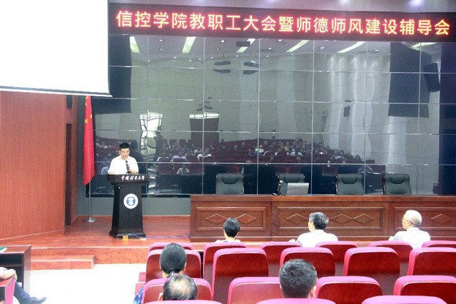 7月11日上午,信控学院于信控楼A101报告厅召开全体教职工大会,全面总结2020年上半年学院各项工作,布置下半年重点工作,学院党政领导班子以及全体教职工出席大会,大会由院党委书记张磊主持。