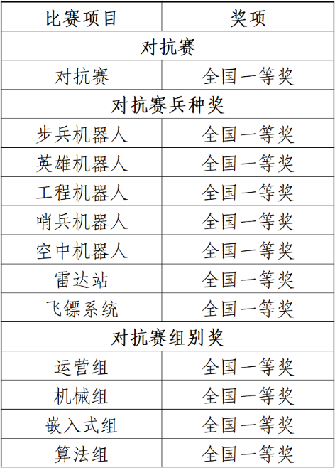 酷博特战队在众多参赛队伍中脱颖而出,在11个兵种和组别单项中全部斩获全国一等奖(最高奖),综合排名荣获全国一等奖、总成绩评分全国第三名。