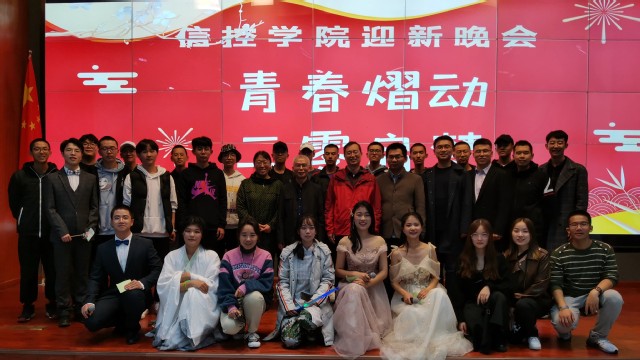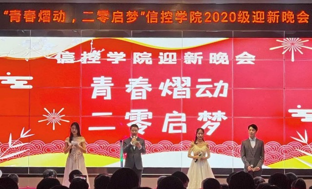 信控学院迎新晚会在学院楼A101报告厅举行。信控学院党委书记张磊、党委副书记翟文艳、副院长李世银、2020级班主任王蕾、徐永刚、张晓强、李鸣轩,团委书记祁昊宇、2020级辅导员焦敬超、李泳峰和2020级全体新生共同观看了迎新晚会。