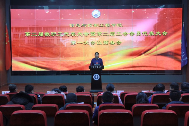 下午1时15分,“两代会”第一次会议预备会在信控学院A101报告厅举行,预备会由信控学院党委副书记翟文艳主持。预备会上,学院工会主席于国防做了《会议筹备工作情况报告》和《代表资格审查报告》,与会正式代表审议并通过了代表资格审查、大会主席团和秘书长名单、大会主要议程,确定了信控学院第二届教代会执委会、工会委员会、青年委员会委员候选人。