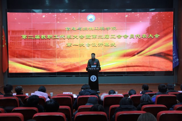 校工会章毛平主席致开幕词,他肯定了学院教代会、工会在之前工作中所取得的成绩,希望新一届教代会代表、工会会员代表继续发挥好桥梁纽带作用,为学校学院的发展做出更大的贡献。