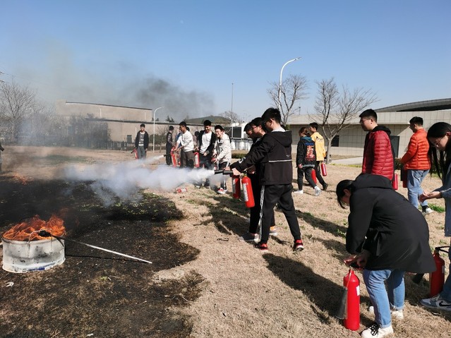 活动开始前,学院葛如峰副院长阐述了对本次演习的重要性和必要性,校保卫处老师首先向参加活动的师生强调安全意识、忧患意识,如何增强防灾自救能力、应急避险能力,介绍了发生火灾后的逃生技巧以及正确使用灭火器的方法。紧接着在保卫处老师的指导下进行实地灭火演习。参加演习的人员用二氧化碳灭火器和干粉灭火器对点燃的火堆和油箱进行灭火,整个演练过程有条不紊,、严谨有序、服从指挥、操作正确、配合默契,达到要求的消防效果,活动圆满成功。