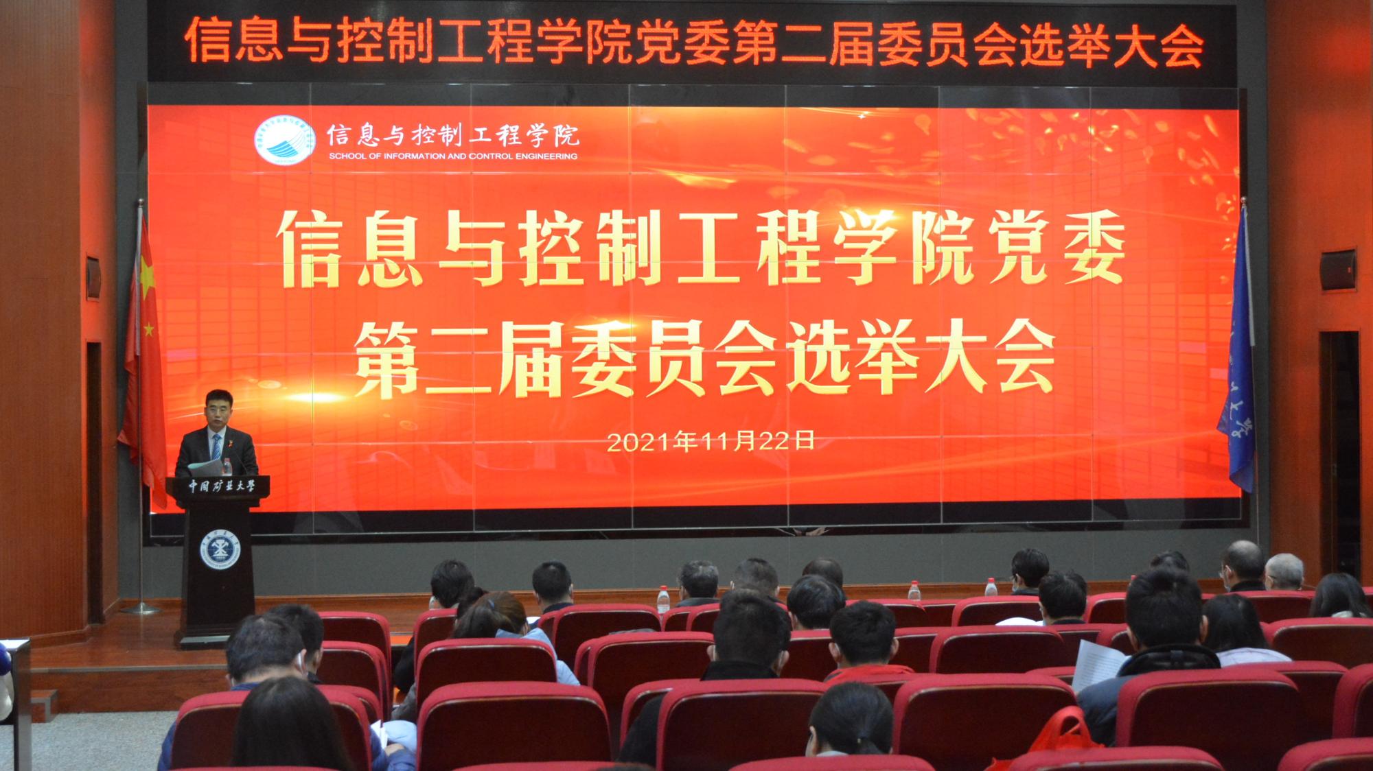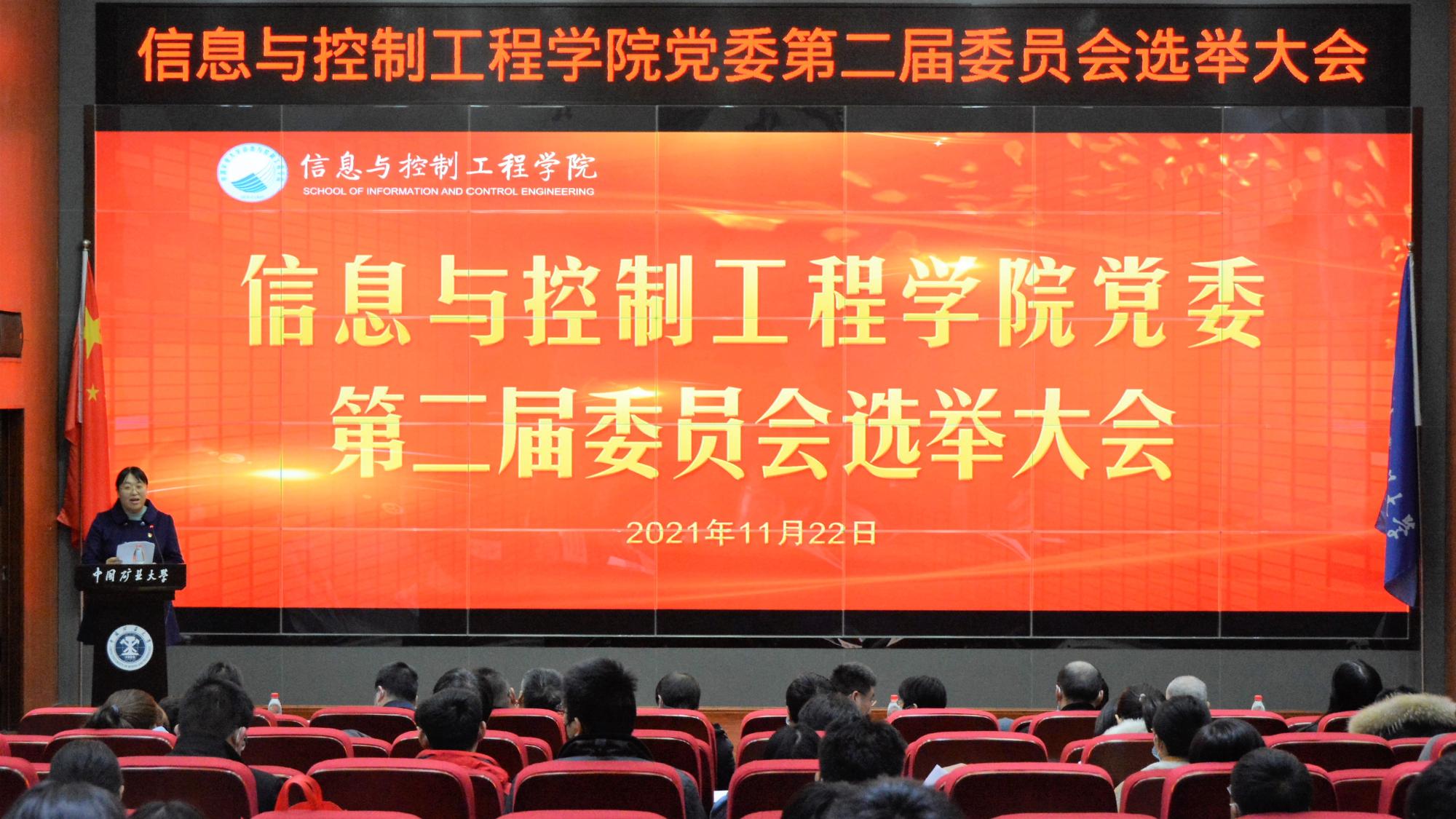 11月22日下午,信控学院党委换届选举大会在学院楼A101报告厅举行,学院全体教职工党员和学生党员代表共计120人参加了大会,大会由学院党委副书记翟文艳主持。