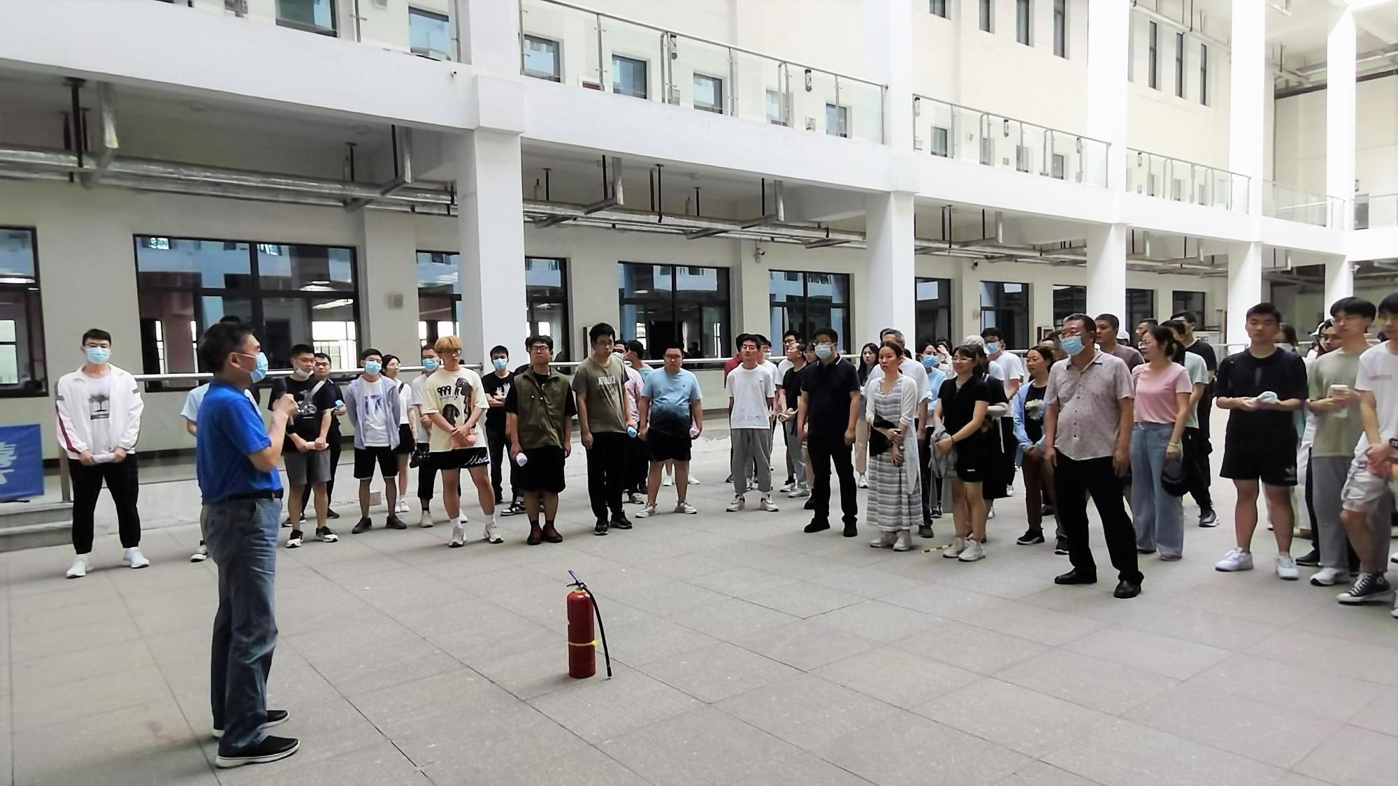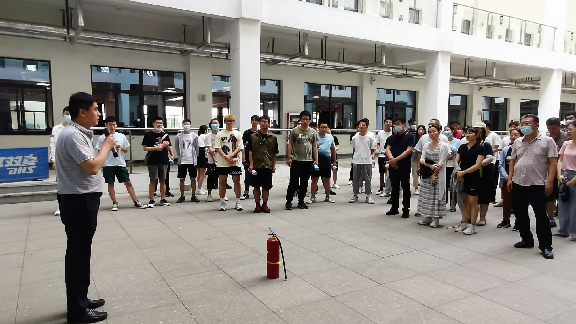 学院葛如峰副院长强调了本次演习的重要性和必要性。校保卫处王垚磊副处长向参加活动的师生介绍了如何增强防灾自救能力、应急避险能力以及发生火灾后的逃生技巧、正确使用灭火器的方法。