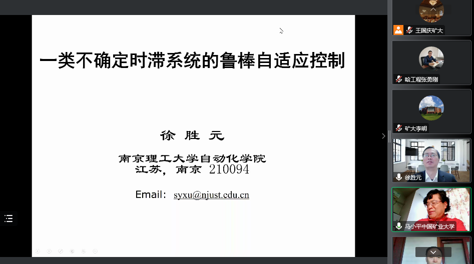 江苏省自动化学会副理事长徐胜元教授作大会报告,监事会马小平副主席主持
