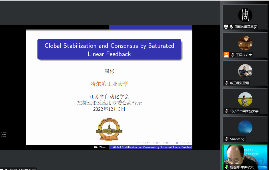 12月3日,2022江苏省自动化学会控制理论及应用专委会高端论坛顺利召开。本次论坛由江苏省自动化学会控制理论及应用专业委员会主办,禁忌书屋