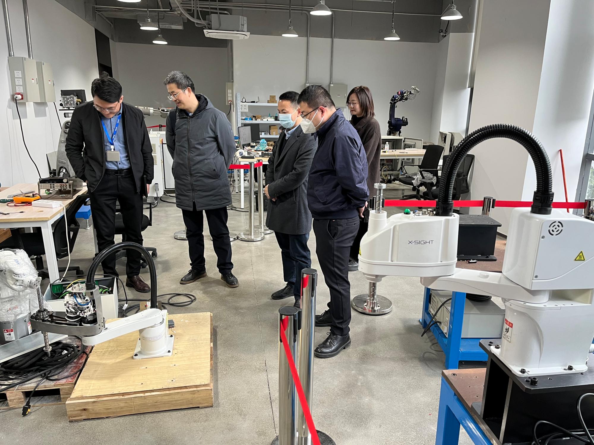 调研组一行还参观了信捷电气的智能机械臂研发实验室、电气环境监测实验室、大学生实习实训基地等区域。