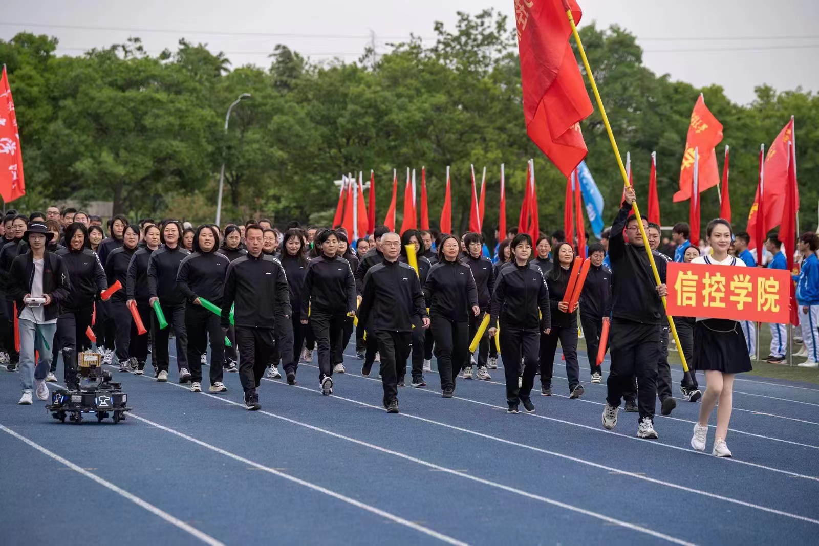 为做好学校教职工运动会的入场式及参赛工作,学院党政领导高度重视、带头参与,学院工会悉心筹备、精心组织,志愿者认真负责、贴心服务,多措并举,凝心聚力,为运动会各项工作提供良好的服务保障,彰显了信控学院团结一心、争先创优的良好精神风貌,为学院学科建设、教学科研、人才培养以及学院高质量发展各项工作注入了强大力量。