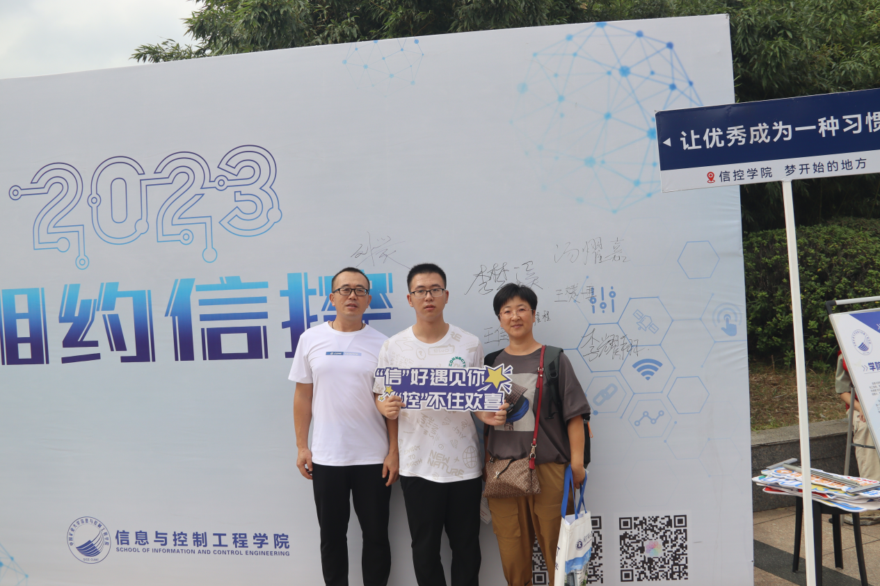 新生与家长在签名墙合影留念
