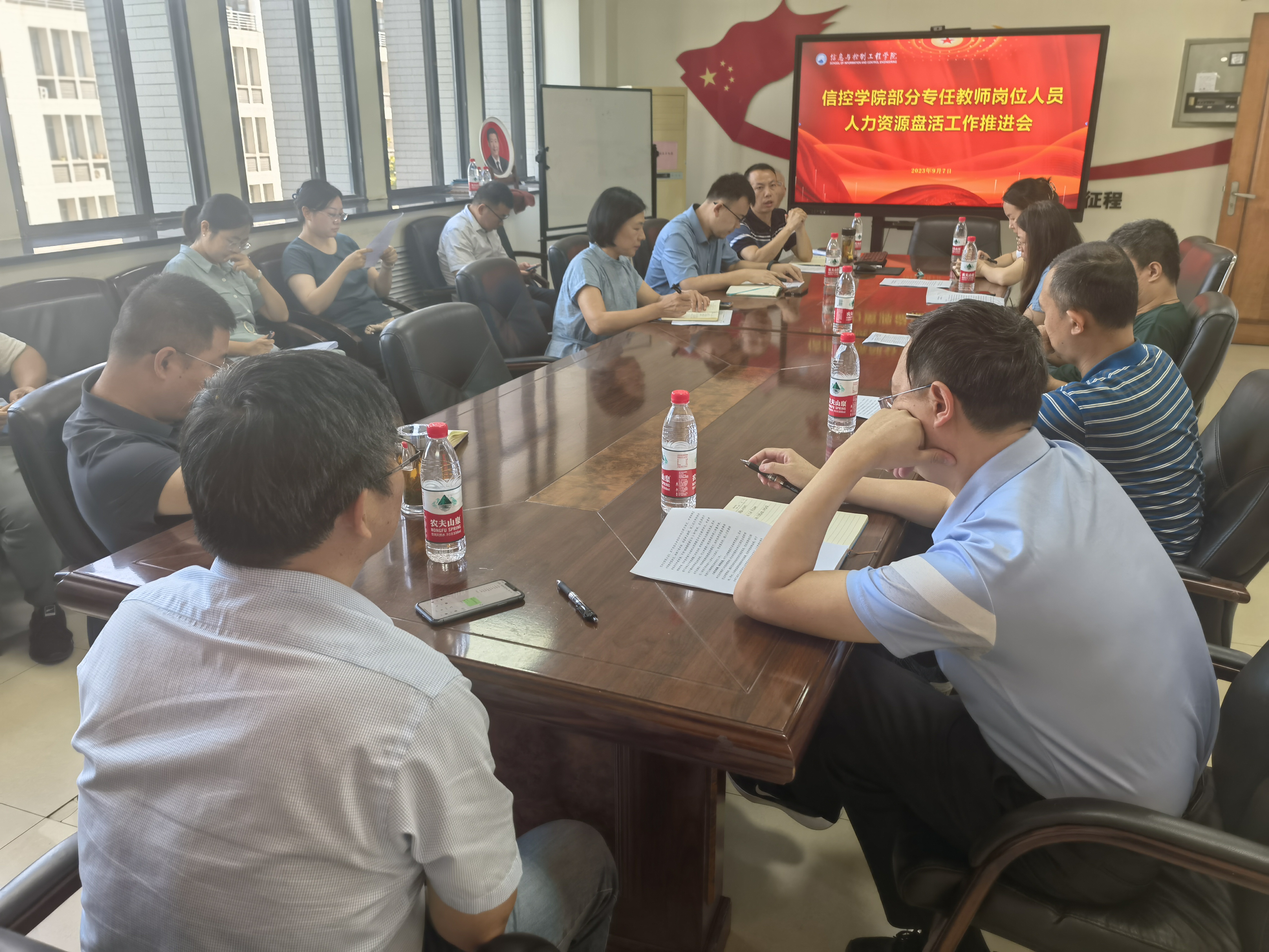 信控学院认真贯彻学校人才强校战略,积极落实学校关于教职工校内转岗、聘用制专职教学型岗位管理等文件要求,通过一体化推进“倾心引才、悉心育才、精心用才”师资队伍建设工作,全面助力教师职业成长与发展。为提前谋划和更好促进教师职业发展,9月7日上午,学院在B313会议室召开部分专任教师岗位人员人力资源盘活工作推进会。副院长李世银、刘海、陈平,校人力资源部人事科科长孟子浩,学院各系主任、部分专任教师参加了会议。会议由陈平主持。