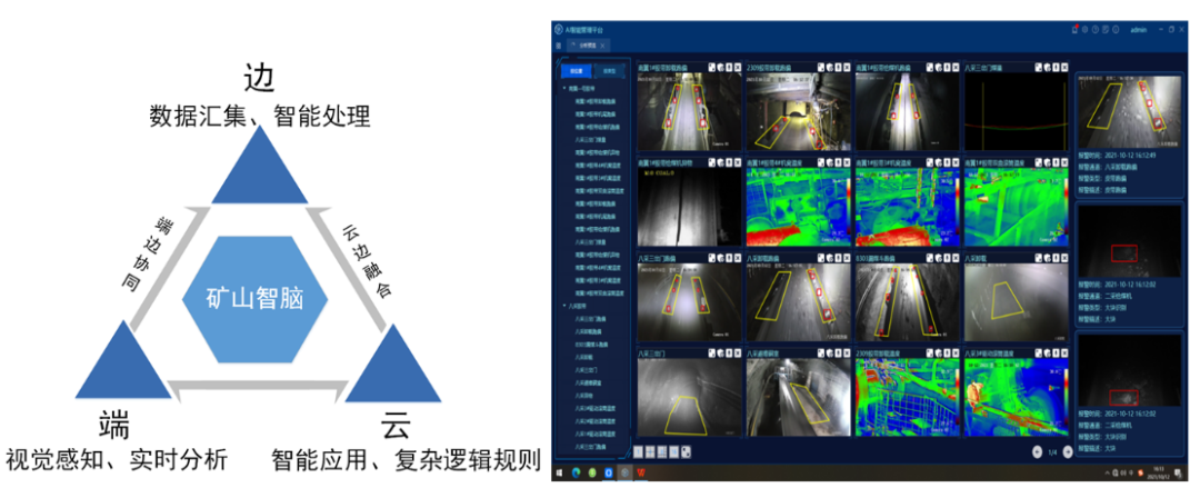 团队通过产学研攻关,开展了前瞻创新性研究工作,揭示了煤矿井下场景的视频图像特征机理,发明了煤矿特殊环境下的工业视频图像特征增强和识别方法,突破了制约煤矿安全生产隐患的视觉实时感知、边缘分析决策、云边端协同控制等关键核心技术,发明、研制并大量推广了端边实时在线分析与交互的安全生产视频AI识别系统和装备,建设了高速视频感知、实时识别、动态协同预警的煤矿安全隐患智能化视频AI监管示范工程。