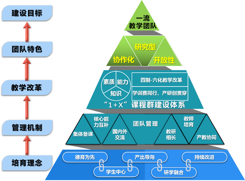 (3)以学生成长成才为中心的教育教学改革新举措。学训赛同行,重构内容体系,打通人才链与创新链,提升人才培养的“创新力”;产研创贯穿,改革育人模式,打通人才链与产业链,提高人才培养核心“竞争力”;搭建共享平台、优化保障机制,促进全过程创新创业教育实施,加强人才培养“支撑力”。