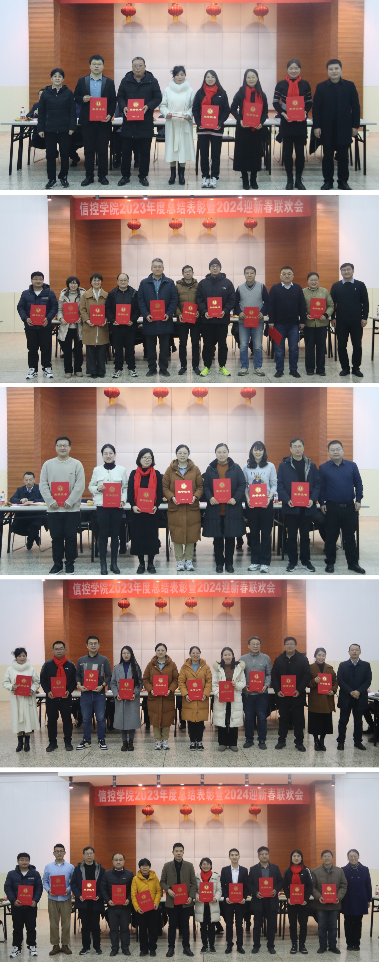 第一阶段举行总结表彰会,会议由陈平主持。王雪松发表致辞讲话,她通报了一年来学院在学科与平台建设、师资队伍与人才引培、科学研究与教育教学、学生工作与人才培养、管理服务与实验室建设等方面的工作成绩,对2024年持续推进学院工作进行了展望,向全体教职工表示诚挚感谢并送上新年祝福。程德强宣读《学院2023年度荣誉称号表彰决定》《学院2023年度院级优秀班主任表彰决定》。学院领导分别为获得安全工作先进个人,学科建设、科研工作与研究生教育教学先进个人,教育教学先进个人,招生就业、学科竞赛与学风建设先进个人,管理服务先进个人的46名教职工和院级优秀班主任的10名老师颁发荣誉证书。