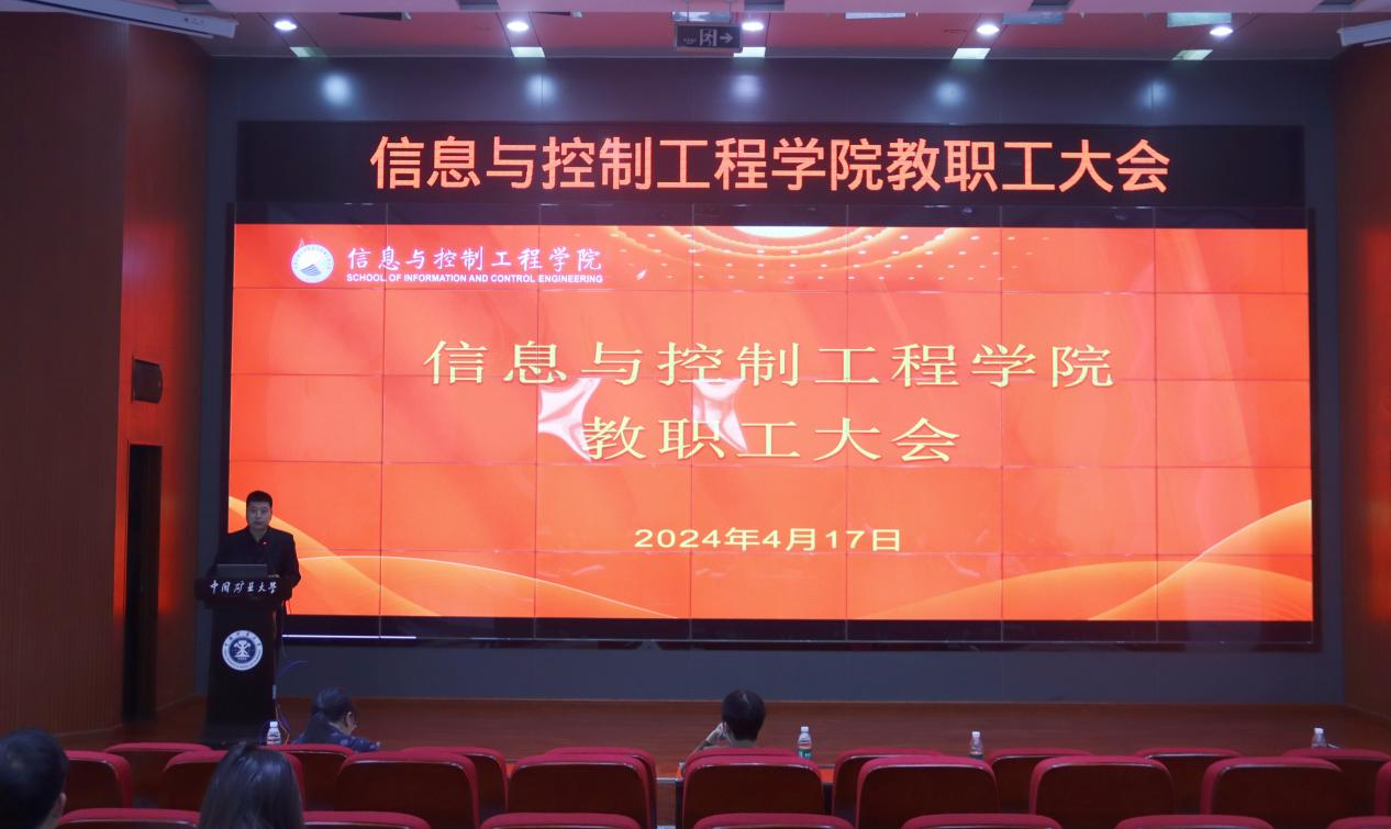 为推动落实学校2024“奋进年”工作任务,做好学院“十四五”规划攻坚提升,4月17日下午,信控学院在报告厅召开全院教职工大会。会议由学院党委书记程德强主持。