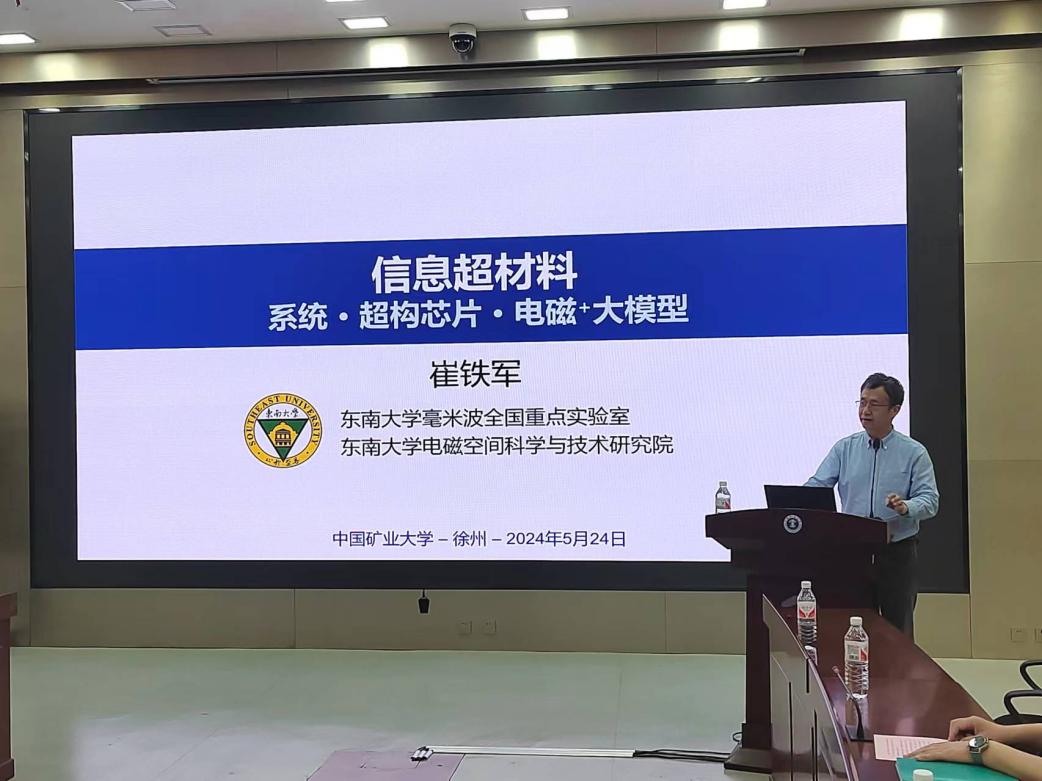 崔铁军院士以“信息超材料:系统-芯片-大模型”为主题作报告,他详细介绍了信息超材料在系统、芯片和大模型领域的最新研究进展和应用。他在报告中指出,信息超材料的发展为通信、雷达和天线系统等领域带来了革命性的变革,实现了对电磁波的高效控制和调节,提升了系统性能和功能。他在报告中强调,对信息超材料的研究要在基本概念、思想、原理方面进行原始创新,实现电磁信息论、信息系统新架构、超构芯片等方向在国际的引领,为中国科技自立自强做出贡献。