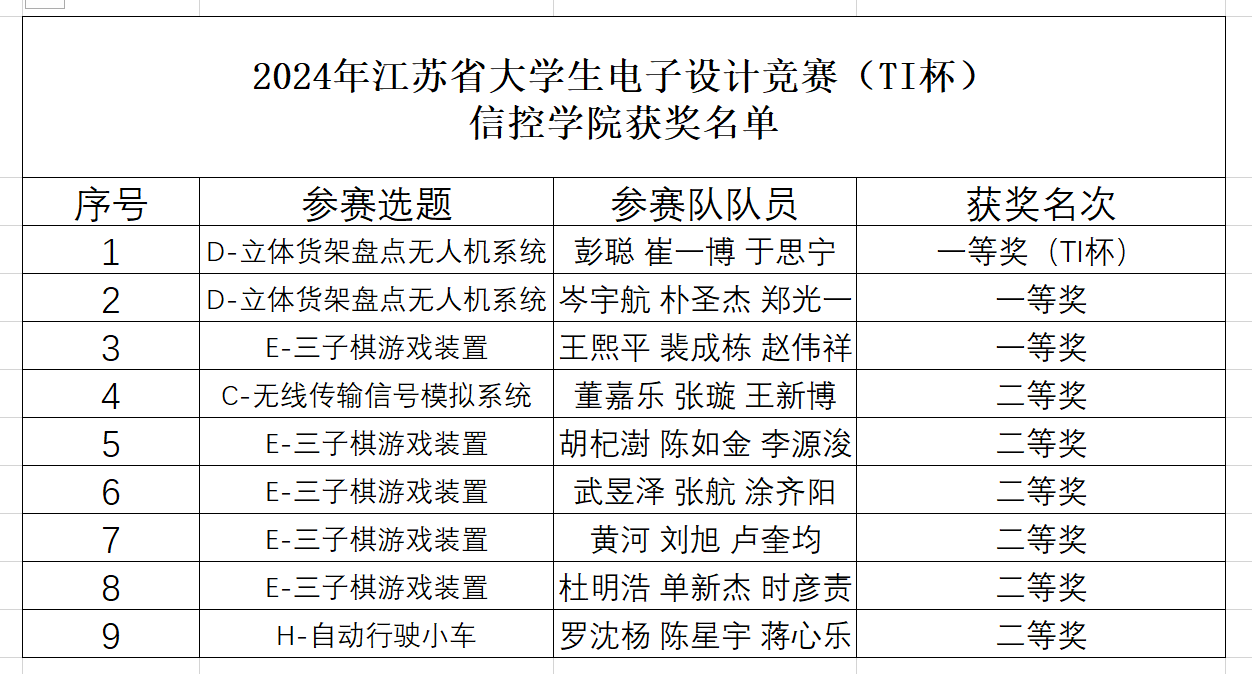 老师高度重视,在竞赛经费与组织管理方面给予了大力支持,袁小平老师多次组织赛前动员大会、专题讲座,指导电子协会举办校内选拔赛和电子设计基础培训等活动,有效提高了学生的实践能力与参赛水平,为此次比赛的顺利开展保驾护航。同时,参赛选手们凭借排除万难的决心与毅力收获了令人瞩目的成绩,也对自己专业的认知更加精准与清晰。希望信控学院能够继往开来、砥砺奋进,在下一届全国大学生电子设计竞赛中取得更优异的成绩。