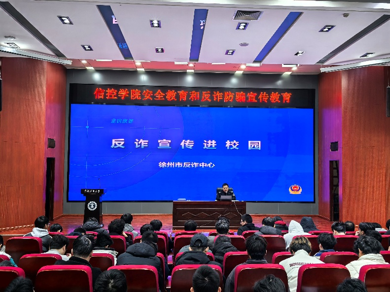 12月25日,徐州市公安局刑事侦查支队六大队三位警官来到学院,为2022级本科生带来了一场生动实用的反诈防骗宣传讲座,活动由学院学工办管钰老师主持,刑侦支队六大队教导员张堃主讲。